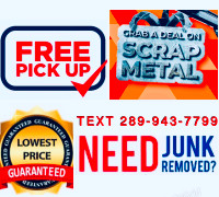 Oshawa ON L1H 3Z7. 416-274-9505 FREE SCRAP METAL PICK UP and CHEAPEST JUNK REMOVAL. Free scrap metal pickup and junk removal services 289-600-0856.