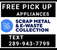 Free scrap metal pick up and junk removal services 289-600-0856. FREE FAST RELIABLE PICK UP SERVICE for your SCRAP METALS APPLIANCES Electronics and more TEXT 416-274-9505 ITEMS for pick up LOCATION Place in front porch close to garage or. We will pick up your unwanted discarded left behind metal objects.
